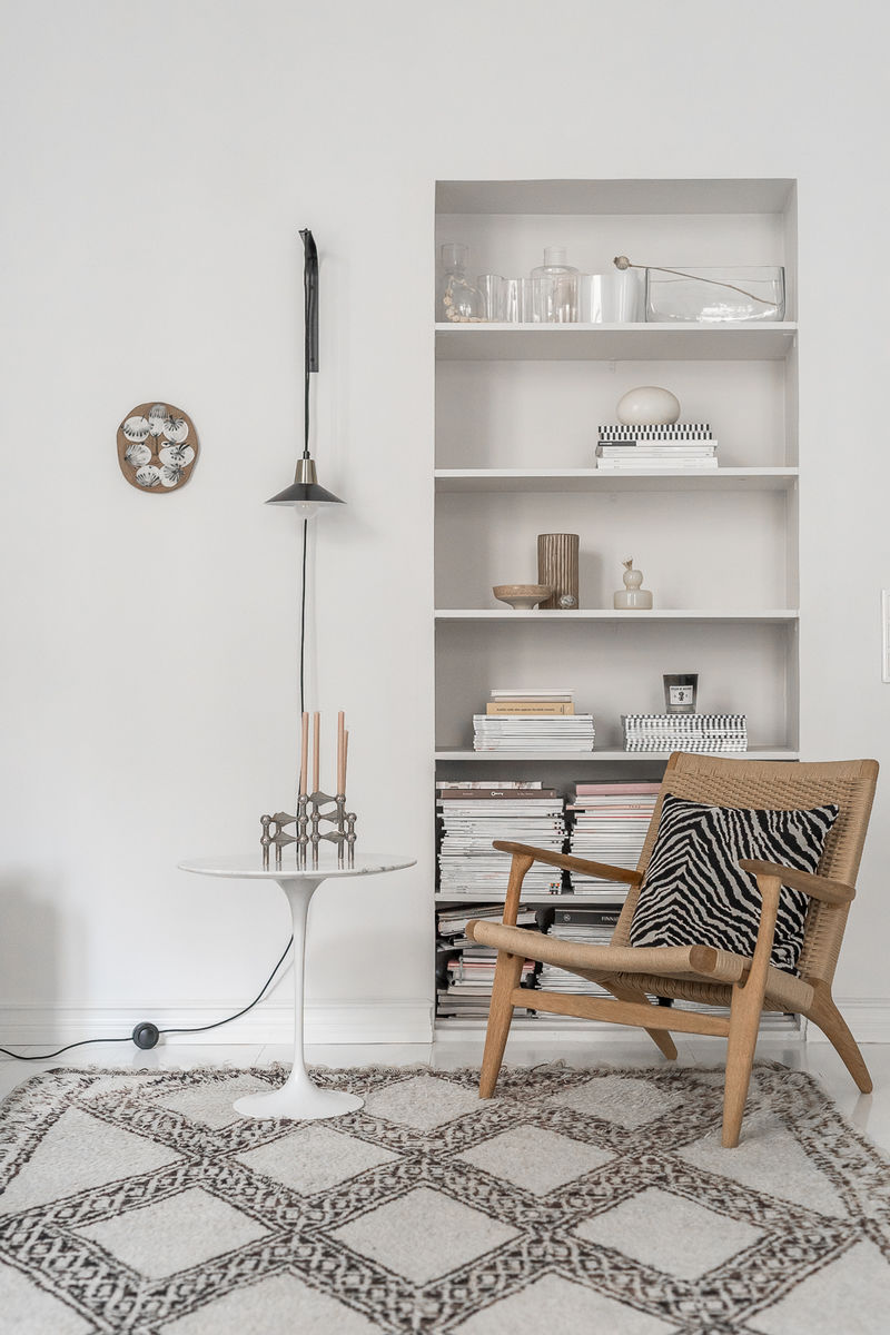 Lovely three-room-apartment with open kitchen solution is situated in Helsinki. The art nouveau house is from the year 1913 ant it has a tranquil feeling with airy room height, white wooden floors and wide window boards. The open kitchen is modernised in a elegant way, has lots of storage. I see also a breakfast cabinet, that's deluxe! The home interior with light colors and natural materials reflects well the feeling of the apartment.